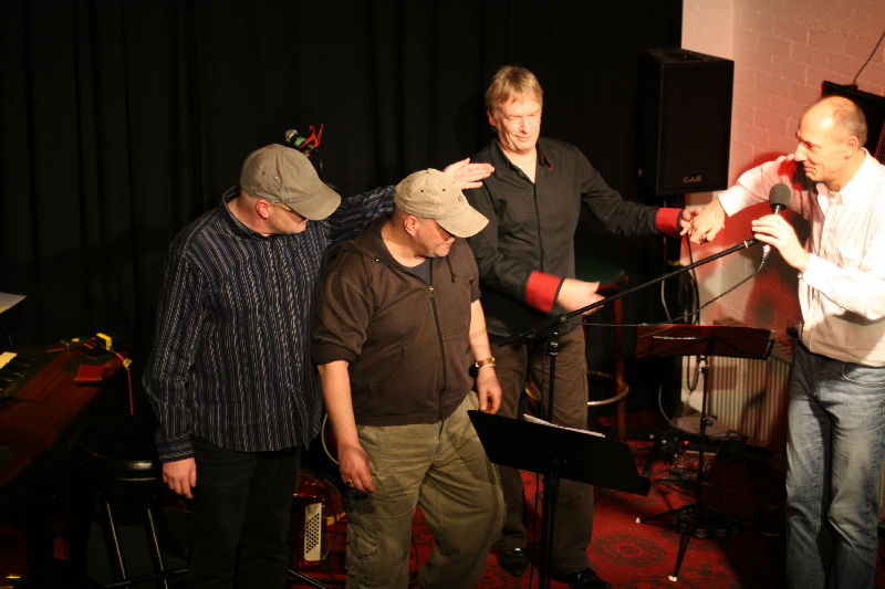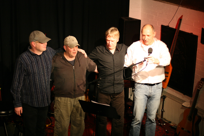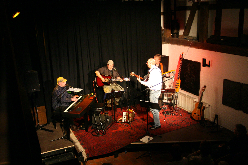 Arno Höddinghaus unterstützte ihn souverän mit Klavier, Keyboards, Gesang und Cajon. Thomas Heinecke erwies sich als Alleskönner an Banjo, Gitarre und einem herrlich gespielten Akkordeon… Carsten Hormes schließlich setzte am E-Bass und elektrischem Kontrabass sein Können souverän ein.“